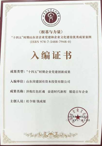 12月19日至20日,山东省企业文化建设发展大会暨《根基与力量》——“十四五”时期山东省企业党建和企业文化优秀成果案例首发仪式在威海隆重举行。菏建国投凭借在党建与企业文化融合发展领域的扎实实践与突出成效,被评为“‘十四五’时期山东省企业党建品牌创建示范单位”;杜令瑞、钱成渠创作的《淬炼红色匠魂 奋进时代新程 锻造百年企业》获评“‘十四五’时期山东省企业党建优秀成果”,并入选《根基与力量》——“十四五”时期山东省企业党建和企业文化优秀成果案例。
