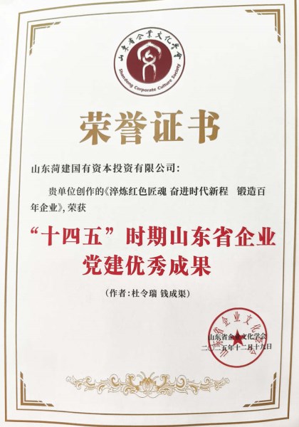 喜报!菏建国投荣获“十四五”时期山东省企业党建品牌创建示范单位、山东省企业党建优秀成果等多项荣誉