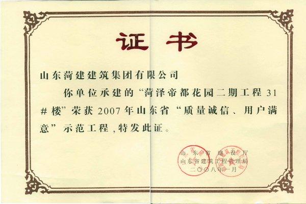 我们秉持总公司 “信誉,品牌,和谐、奉献”的企业理念,近几年先后承建了帝都花园小区住宅楼,华英嘉园7#、8#楼,单县商务中心综合楼,单县检察院办案楼,菏建·滨河鑫城,菏泽景岸家园,山东中岭五星级国际大酒店,菏建·数码大厦,曹县一中新校区等工程。竣工工程质量全部合格,获市级优良工程5个,省优良工程6个,市安全文明示范工地2个,省安全文明优良工地3个。帝都花园6#、30#楼,单县商务中心荣获山东省建筑工程质量最高奖“泰山杯”。